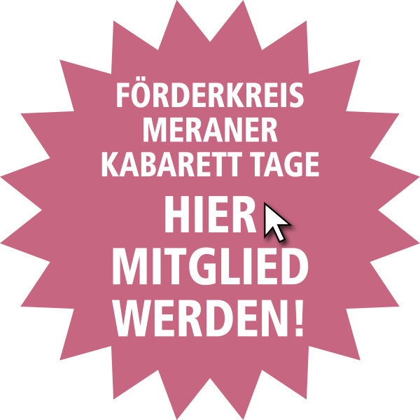 2026 kehren die Kabaretttage ins Stadttheater zurück, und zwar vom 12. bis 29. März. Der genannte Radiokabarettpreis kehrt 2026 nach 2005 und 2019 zum 3. Mal nach Meran zurück. Termin ist der 22. und 23. Mai. Die nachfolgend genannten Vorteile für Förderkreismitglieder gelten im kommenden Frühjahr für beide Kabarett-Höhepunkte, also die MERANER KABARETT TAGE und den Internationalen Radiokabarettpreis SALZBURGER STIER.